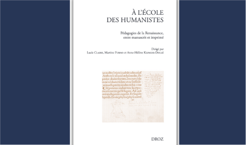 Parution "À L’ÉCOLE DES HUMANISTES Pédagogies de la Renaissance, entre manuscrit et imprimé" (dir. Lucie Claire, Martine Furno et Anne-Hélène Klinger-Dollé), DROZ, 2025.